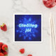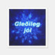 Un essaim de flocons de neige fractaux bleus. Le texte islandais "Gleðileg jól" (Joyeux Noël) apparaît en bleu et blanc éclatant.