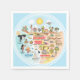 Un dessin de la Californie du Sud - mettant en vedette Los Angeles, Orange County et San Diego - des personnages de dessins animés de toutes sortes nagent et s'amusent et jouent sous le soleil de Californie brillant brillant au-dessus de tout.