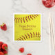 Ce confetti sportif de softball d'anniversaire comprend l'image réaliste et abstraite surdimensionnée d'un softball qui a été recoloré jaune vif avec couture rouge, sur laquelle vous pouvez customiser le texte - par katz_d_zynes