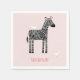Un joli zèbre et quelques oiseaux décorent ce décor safari rose. Personnalisez en changeant le nom ou le texte pour convenir à votre célébration.