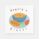 La serviette pour le dîner est un bol de soupe avec du pain, des tomates, des concombres, du persil et du poivre noir. Le nom et la couleur arrière - plan peuvent être personnalisés. Combinez avec le même design pour le set de table, le dessous de verre et la tasse. Dîner Parfait ! #dîner #serviette #soupe #bol #pain #concombre #persil #concombre #plaque #nom #couleur de fond #bleu