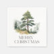 Des serviettes rustiques chic en bois sont décorées de "Joyeux Noël" surmonté d'un unique pin aquarelle en vert chasseur.