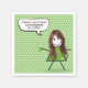 Mignonne figurine bâton fille avec une tasse de café vert, cheveux, collier de perle, et citation sur pois arrière - plan. Le devis est modifiable.
