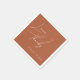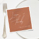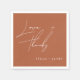 Élégant script rustique moderne en terre cuite "amour + merci" avec des serviettes en papier de nom de mariée et mariée pour les mariages ou toute occasion spéciale.