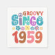 Une idée de cadeau d'anniversaire funky cool pour les hippies et les poussins ! Comprend une police rétro psychédélique colorée avec des symboles de paix et des fleurs.
