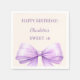 A soft ivory background color. Decorated with a large lavender colored bow. Personalize and add the name and date. Text: Happy Birthday!