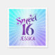 "Bonne Douce 16". Célébrez son anniversaire avec cette serviette en papier personnalisée et rétro super. Une typographie violette et bleu marine amusante, tendance et audacieuse, avec une typographie sans serif moderne, recouvre un arrière - plan de rayons bleu clair turquoise et violet foncé avec des points blancs. Personnalisez le texte personnalisé avec le nom de votre fille. Choisissez parmi plusieurs tailles. Cette serviette en papier design est garantie de donner le ton juste pour sa célébration spéciale ! Invitations, assiettes, bannières et autres cadeaux d'anniversaire sont également disponibles dans cette collection cool et unique. Il suffit de taper le nom de la fille d’anniversaire et vous pouvez facilement personnaliser ces serviettes en papier Sweet 16. S'il vous plaît, envoyez-moi un message avec toute question ou demande.