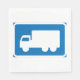 Un panneau routier de camions avec un gros camion blanc dessus. Ce design semble vraiment efficace sur ces serviettes en papier