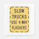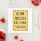 Un panneau routier de camions lents qui dit utiliser des clignotants 4-sens. Ce design semble vraiment efficace sur ces serviettes en papier
