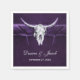 Vache occidentale crâne de vache violet foncé mariage campagnard blanc cowgirl vieilles serviettes de cocktail en papier rustique. Vintage ferme d'inspiration design, vieux style sauvage ouest antique. Cool, tendance, animal de ferme moderne. Copyright de l'image Marg Seregelyi Photography.