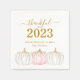 Fourniture élégante et élégante de fête de grâce personnalisée! Célébrez l'action de grâce en style avec cette serviette en papier tendance. Caractéristiques de design "reconnaissante pour 2023" en typographie en écriture or sur un arrière - plan blanc propre complété par des citrouilles blancs dorés rose or. Personnalisez ce produit en ajoutant le nom de famille ou votre texte personnalisé. Facile à customiser. BON THANKSGIVING !