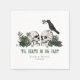 Ces élégantes serviettes de mariage irlandaises de la Saint Patrick "Til Death Do Us Part" sont décorées à l'encre noire d'illustrations à thème irlandaises et gothiques dessinées à la main, mettant en vedette des crânes de mari et de femme et un corbeau noir orné de roses verts, de feuilles, de baies, de fleurs sauvages et de trèfles verts. Arrière - plan blanc élégant. Tout le texte est modifiable.