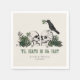 Ces élégantes serviettes de mariage irlandaises de la Saint Patrick "Til Death Do Us Part" sont décorées à l'encre noire d'illustrations à thème irlandaises et gothiques dessinées à la main, mettant en vedette des crânes de mari et de femme et un corbeau noir orné de roses verts, de feuilles, de baies, de fleurs sauvages et de trèfles verts. Élégant arrière - plan d'ivoire. Tout le texte est modifiable.