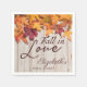 Serviettes personnalisées parfaites sur le thème rustique pour votre réception de mariage ou baby shower de mariée. Les couleurs du thème automnal dans les feuilles et le panneau de bois en font un élément parfait pour un mariage champêtre.