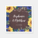 Ces serviettes mariages sont décorées dans un style floral rose et tournesol bleu avec des lampes à cordes et arrière - plan en bois. Personnalisez-le avec votre texte. Produits correspondants également disponibles.