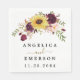 Le design présente une belle demi-couronne de tournesol aquarelle, des pivoines et des éléments floraux roses dans différentes nuances de rose roux, de rouge bordeaux, de marsala/prune et plus encore sur la végétation peinte.