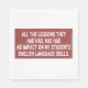 Toutes les leçons qu'ils ont eues n'ont eu aucun impact sur mes élèves les compétences en anglais. Un drôle de design typographique pour un professeur d'anglais. Le mot eu est répété 4 fois dans la phrase mais la phrase a toujours du sens. Cela reflète la difficulté d'apprendre l'anglais.