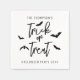 Ajoutez une touche festive à votre fête d'Halloween avec ces serviettes en papier design. Doté de Trick ou Treat dans une typographie de script noir élégant avec des silhouettes de chauve-souris ludiques, le design comprend des zones de texte personnalisables en haut et en bas où vous pouvez ajouter n'importe quel nom de famille ou message personnalisé, comme Halloween Party 20YY. Idéal pour des réunions saisonnières, des célébrations éffrayantes ou des moments d'Halloween mémorables avec un look moderne et minimaliste.