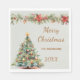 Set a festive and elegant tone at your holiday gathering with this tree garland red florals cream Christmas party napkin. Featuring a soft green background adorned with striking red floral accents and garland motifs, this design adds a warm, refined touch to your Christmas table décor.