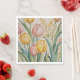 Un agencement délicat de tulipes aux couleurs pastel donne un cadre lumineux. Leurs tiges élégantes soutiennent gracieusement les courbes douces de leurs pétales, évoquant un sentiment de beauté tranquille. Saviez-vous qu'au 17ème siècle, les tulipes étaient si prisées dans les Pays-Bas qu'elles ont déclenché un phénomène connu sous le nom de "Tulip Mania", avec des ampoules simples se vendant pour l'équivalent de milliers de dollars aujourd'hui ? Ce design reflète l'attrait durable de ces fleurs emblématiques, symbolisant à la fois la beauté délicate et la nature éphémère des plaisirs de la vie.