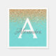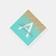 Parties scintillant Aqua Blue et Gold Faux et serviettes de fête d'anniversaire Monogram élégant étincelant. Ces Turquoise et Parties scintillant Anniversaire, Fête des mariées, Mariage, Baby shower Napkin peut être customisé pour inclure votre nom initial et prénom.