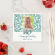Turquoise Leaf Pattern 80th Birthday Party Photo Napkins. For a woman who celebrates her eightieth birthday. Elegant turquoise leaf pattern. Add your photo, name and text inside or erase it. You can change the age number.
