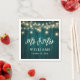 Serviettes en papier mariage turquoise personnalisées, en bois de grange et lampes à cordes. Personnalisez facilement ces plaques papier mariage turquoise avec vos détails mariages. Ces plaques en papier Mr et Mrs sont parfaites pour une turquoise fête de pays rustique, de jardin ou de mariage de grange. Éléments correspondants disponibles.