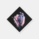 Serviettes en papier à l'image d'un corbeau noir aux ailes violettes roses. Une aquarelle rose derrière cet oiseau mystique.