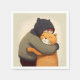 L'enfant embrasse ses serviettes de chaton gingembre pour Cat Cafe. Illustration d'amitié pour l'enfant et d'humour animal.