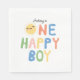 Un beau dessin dessiné à la main de papier d'anniversaire de soleil. Un joli "One happy boy" sur le thème de la première fête d'anniversaire papier serviette. Un beau thème d'été en papier d'anniversaire de soleil qui peut être customisé à vos détails.