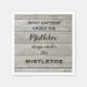 Cette serviette de vacances amusante est agrémentée de la citation mignonne, Ce qui se passe sous le gui reste sous le gui, sur un fond de panneau de bois vieilli, lui donnant une sensation rustique de campagne.