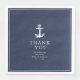 Les éléments de cette élégante suite de mariage présentent un style nautique classique avec un look épuré et minimaliste. Des vagues stylistiques dans des nuances d'aqua à bleu marine et une illustration d'ancre et de corde fournissent des accents uniques. Sur cette serviette en papier coordonnée, la petite ancre blanche sur fond bleu marine est simple mais accrocheuse. Ajoutez votre message 'Merci', vos noms et la date de mariage en utilisant le modèle fourni. Parfait pour les mariages au club de yacht, bateau, bord de mer ou destination estivale. Recherchez ID836 pour voir cette suite complète et d'autres avec des accents d'éléments marins alternés.