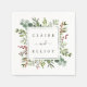 Cette serviette en papier mariage est ornée d'eucalyptus à l'aquarelle peinte, de feuilles verts, de baies rouges, de branches de pin à cadre carré vert. Pour une personnalisation plus avancée de cette conception, cliquez sur le lien "Customiser plus loin". Des articles correspondants sont également disponibles.