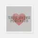Serviettes de fête en papier pour les amateurs de podcast vrai crime partout, avec un coeur d'empreintes rouges avec texte style machine à écrire.