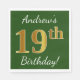 Serviette En Papier Vert, Faux Gold 19e anniversaire + Nom personnalis