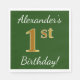 Ce design simple de serviette en papier comporte un message comme "1er anniversaire d’Alexandre!", avec le "1er" à l’allure fausse or, sur un arrière - plan de couleur verte. Le nom peut être personnalisé. Il pourrait être utilisé à une fête d'anniversaire pour quelqu'un qui célèbre son premier anniversaire. [~Z0000081]