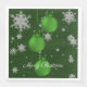 Ajoutez une touche festive à vos rassemblements et fêtes de Noël en cette période de fêtes avec une serviette Green Christmas Ornaments Party. Le design Napkin comprend un trio d'ornements de Noël suspendus avec des flocons de neige en chute et un arrière - plan vert foncé. Autres cadeaux et objets de vacances disponibles avec ce design aussi.