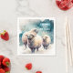 Des serviettes en papier de fête d'anniversaire mignonnes avec des moutons sous la neige. Pour les enfants nés en hiver. Customisez ce produit en ajoutant les informations de votre partie.