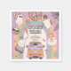 Vibes Éffrayantes rétro Serviettes de fête d'Halloween - Soyons Super ! Le design comprend un arrière - plan coloré avec un arc-en-ciel boho. Des illustrations cool rétro décorent le modèle simple avec d'adorables fantômes hippies, des fleurs de crâne, une boule de disco éffrayante et des bonbons spooktaculaires.