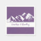 Serviettes violettes avec une silhouette de montagne blanche et chambre pour vos noms.