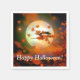 Grande serviettes d'Halloween avec mon oeuvre d'art numérique originale de la silhouette d'une sorcière sur son balai volant au-delà d'une éffrayante pleine lune la nuit d'Halloween, remuant les feuilles d'automne. Le texte personnalisable dit "Happy Halloween".