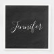 Serviette En Papier Votre nom | Élégant script blanc sur noir