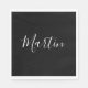 Serviette En Papier Votre nom | Élégant script blanc sur noir