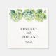 This wedding paper napkin is shown with a lovely green hydrangea vine watercolor print.