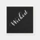 "Méchant" écrit dans un joli script de ruban décore cette simple serviette noire.