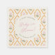 Add these custom paper napkins to a sweet Baby in Bloom shower for a charming additional detail. These napkins continue the motif of the Dainty Wildflower Baby is Blooming design with a pattern of floral filled ogee shapes to add a bit of collected eclectic charm to the event. Personalize the text with the mama to be's name.