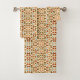Ensemble serviette et gant de toilette à thème enfantin avec des animaux de dessin animé ludiques, y compris des lions et des éléphants, de couleurs vives sur fond beige, évoquant une ambiance amusante et joyeuse.