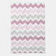 Serviette de cuisine rose poussiéreuse moderne et élégante de motif rétros de chevron de zigzags de rayures de rose, grises et blanches, personnalisables vintages avec votre propre texte ou photo, une addition unique et élégante à votre décor de cuisine.