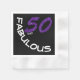 Ce design comporte une typographie "50 et fabuleuse". Le numéro 50, en parties scintillant faux violet, domine le haut à droite du design tandis que fabuleux, en blanc, arcs du haut à gauche au bas à droite.