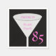 Ces serviettes en papier de cocktail de 85e anniversaire sont un grand complément aux fournitures de fête pour un 85e anniversaire. Les serviettes disposent d'un verre sur fond noir avec le numéro 85 à droite du verre en rose. Vous pouvez placer le nom du célébrant d'anniversaire sur le verre et les mots "Bravo" apparaissent à l'intérieur du verre. Ce sont de belles serviettes jetables personnalisées pour un 85ème anniversaire pour les femmes. Copyright henishouseo